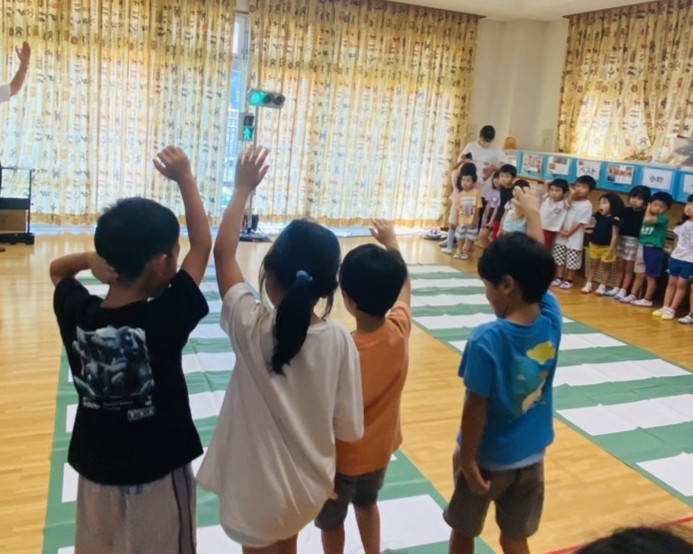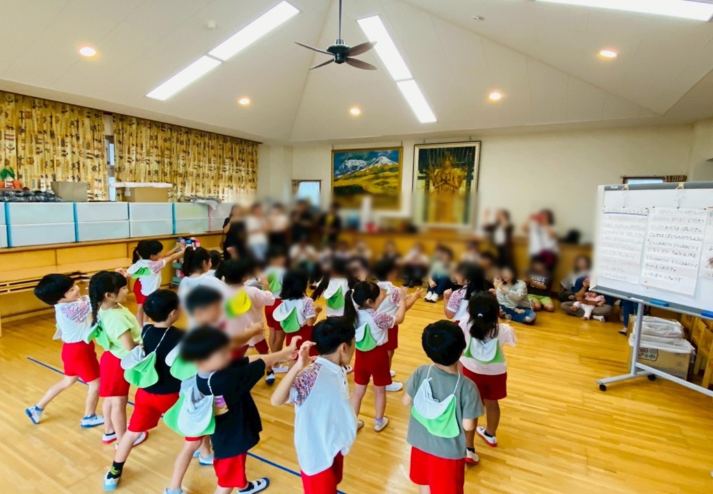 秋の足音が聞こえるようになった今日。 保育参観を行いました。 未満児さんは親子でふれあい遊び、以上児さんは体育ロ・・・交通安全教室を行いました